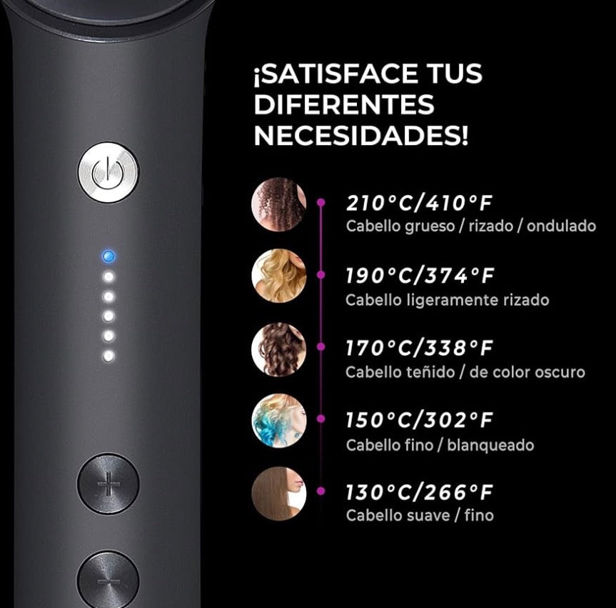 Alisa rápido, reduce frizz y protege el cabello con control de temperatura, para peinados fáciles y duraderos cada día.