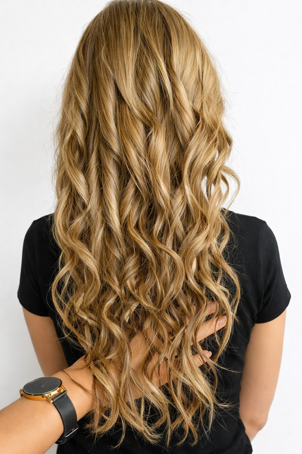 El rizador ajusta temperatura y enrolla automáticamente para crear ondas definidas, rápidas y seguras que duran todo el día.